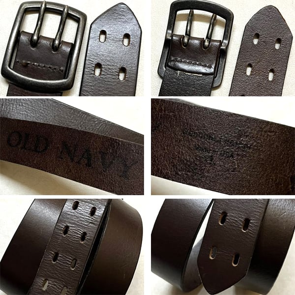 1点物◆USA製オールドネイビーGAPダブルピンバックル茶レザーベルト古着メンズレディースOKアメカジ90sストリート/スポーツブランド363247