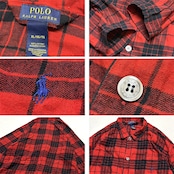 1点物◆ラルフローレンPOLO赤黒ネルシャツ長袖チェックシャツ古着メンズXLレディースOKアメカジ90sストリート/スポーツUSAブランド363256