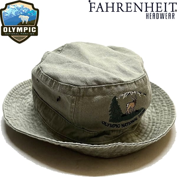 1点物◆オリンピック国立公園バケットハット帽子US古着メンズレディースOKアメカジ90sストリートUSAキャップ中古ブランド緑オリーブ363262