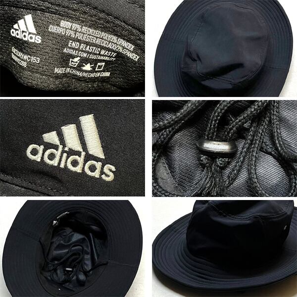 1点物◆アディダスadidas黒3本ライン入りハット帽子US古着メンズレディースOKアメカジ90sストリート/キャップ/アウトドア/ブランド363268