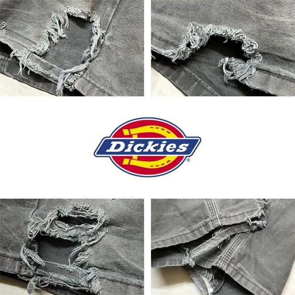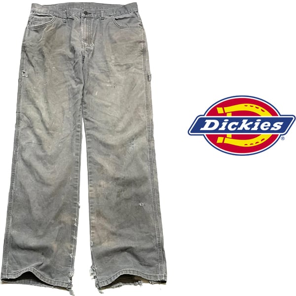1点物◆ディッキーズ雰囲気系ワイド襤褸ペインターパンツ古着メンズ34レディースOKアメカジ90sストリートワークパンツ中古ジーンズ緑363270