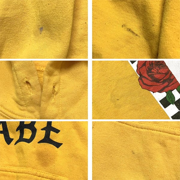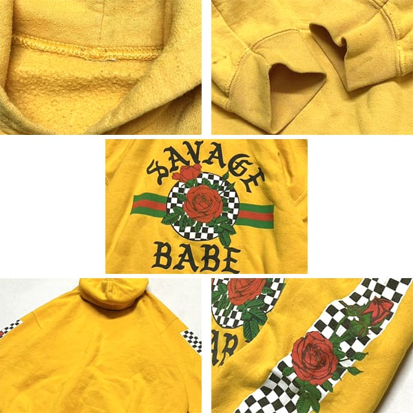 1点物◆Savage Babe薔薇バラ袖プリントスウェットパーカー古着メンズLレディースOKアメカジ90sストリート中古USブランドXL黄イエロー363282