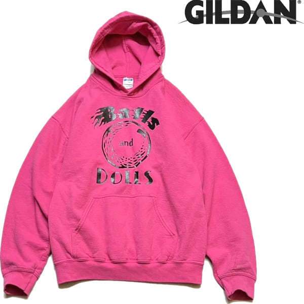 1点物◆GILDANピンク色バックプリントスウェットパーカー古着メンズMLレディースOKアメカジ90sストリートUSAブランド中古トレーナー363284