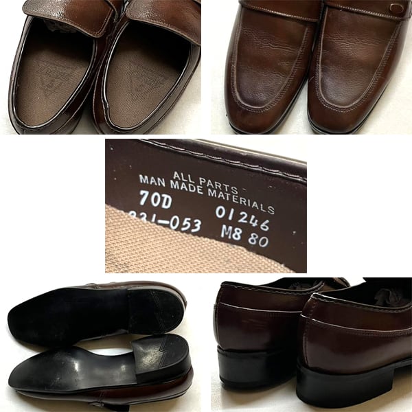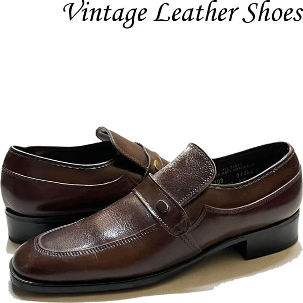 1点物◆ビンテージ70s茶レザーシューズ革靴ローファーUチップ古着7メンズ25レディースOKアメカジ90sストリートくつレトロブランド363288