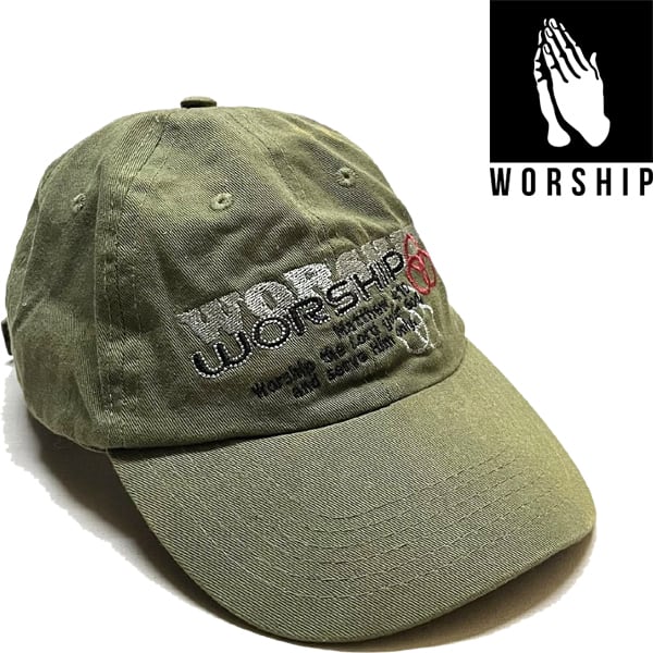 1点物◆雰囲気系フェード緑Worship帽子ベースボールキャップUSA古着メンズレディースOKアメカジ90sストリートスポーツUSAブランド363313
