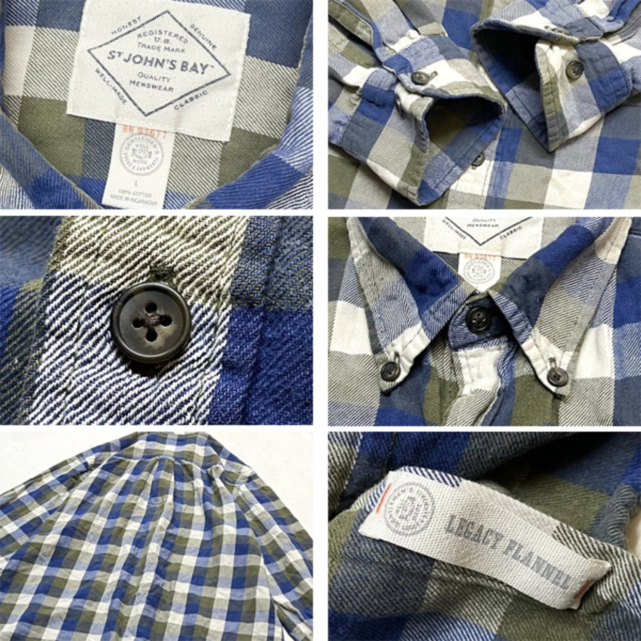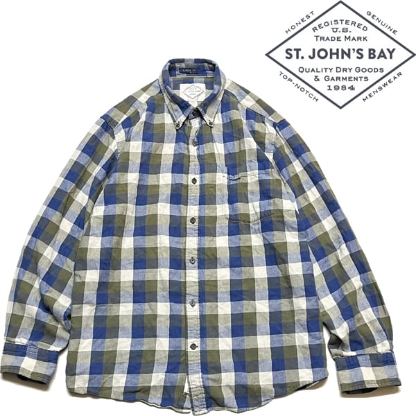 1点物◆セントジョンズベイ緑紺チェックシャツ長袖ネルシャツ古着LメンズXLレディースOKアメカジ90sストリート/スポーツUSAブランド363328