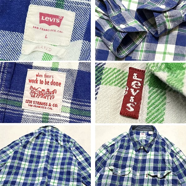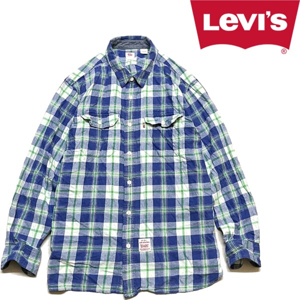 1点物◆リーバイスLevi's青緑ネルシャツ長袖チェックシャツ古着LメンズXLレディースOKアメカジ90sストリート/スポーツUSAブランド363321