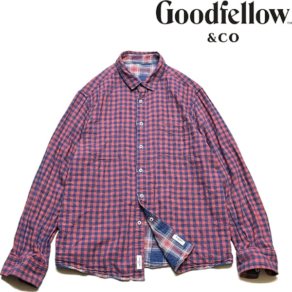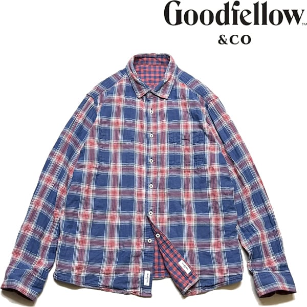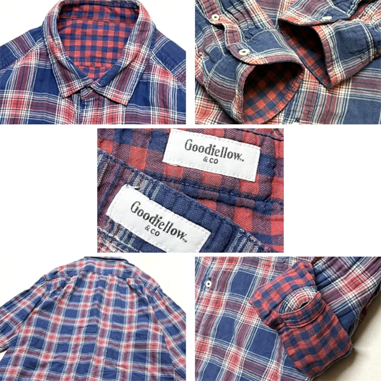 1点物◆リバーシブル両面OK紺赤チェックシャツ長袖ネルシャツ古着メンズLレディースOKアメカジ90sストリート/スポーツUSAブランド363329