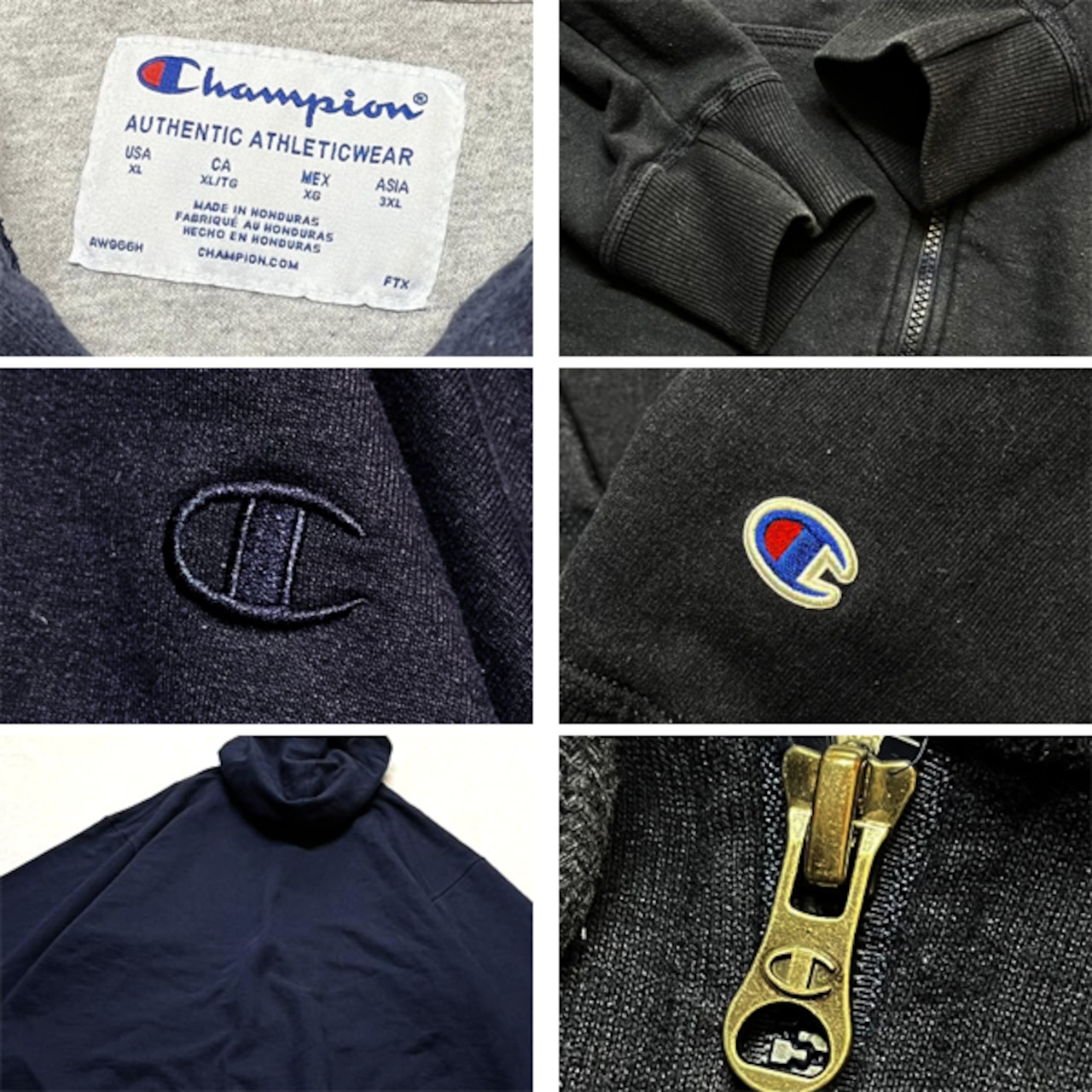 1点物◆チャンピオン目玉ジップアップ紺スウェットパーカー古着メンズXXXLレディースOKアメカジ90sストリートスポーツブランド中古US363352
