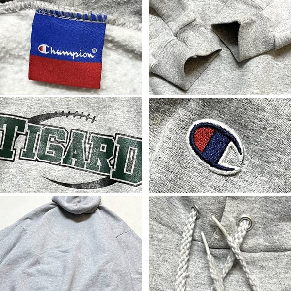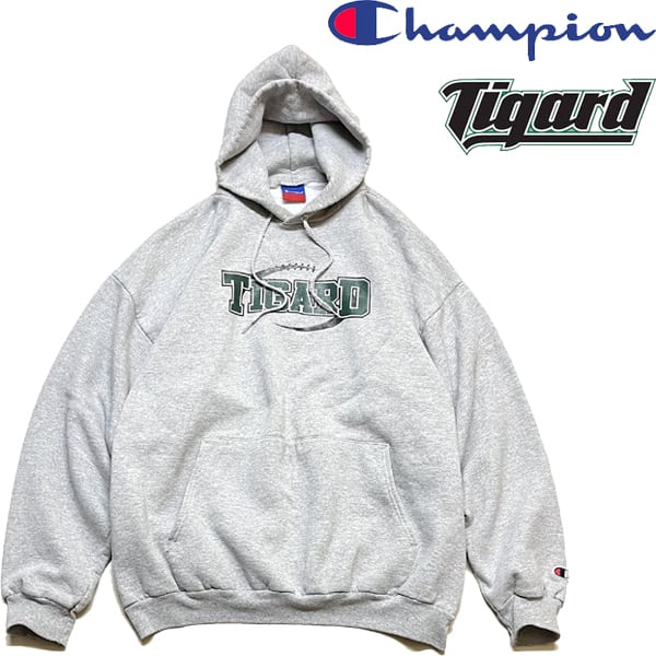 1点物◆チャンピオンCグレー目玉プリントスウェットパーカー古着メンズXXLレディースOKアメカジ90sストリートスポーツブランド灰色363350