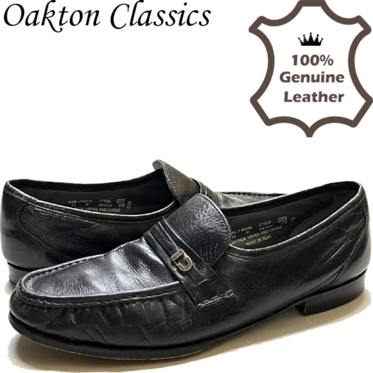 1点物◆ビンテージ90s革靴OAKTONレザーシューズ黒ローファー古着メンズ11レディースOKアメカジ90sストリート中古ブランド28US29くつ363356