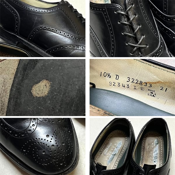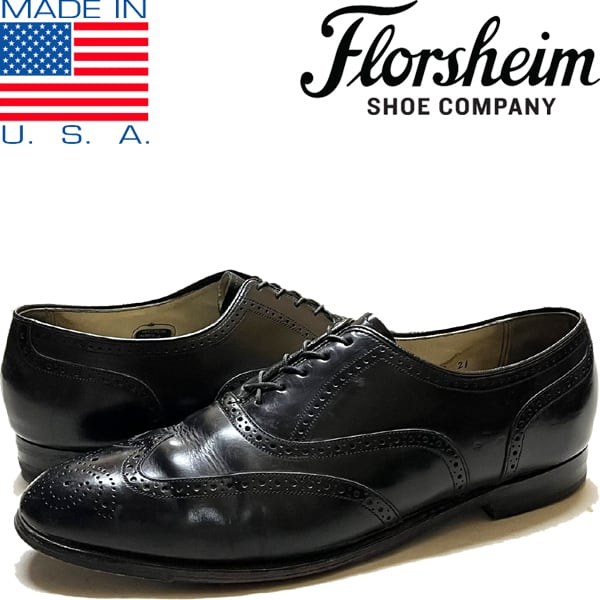 1点物◆USA製ビンテージ90sフローシャイム革靴レザーシューズ黒ウイングチップ古着メンズ28.5レディースOKアメカジ90sストリート中古363360