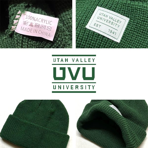 1点物◆ユタバレー大学USA深緑ニット帽子ビーニーニットキャップ古着メンズレディースOKアメカジ90sストリート/スポーツ中古ブランド363366