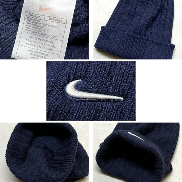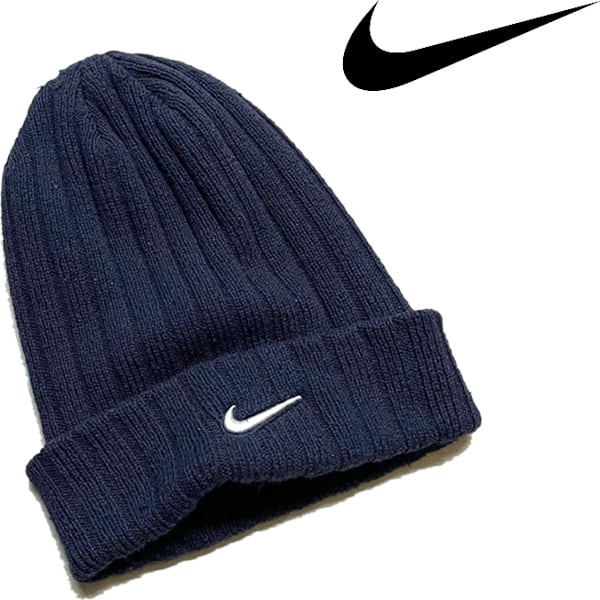 1点物◆ビンテージ90sナイキNIKE紺ニット帽子ビーニーニットキャップ古着メンズレディースOKアメカジ90sストリートUSAブランド中古363375