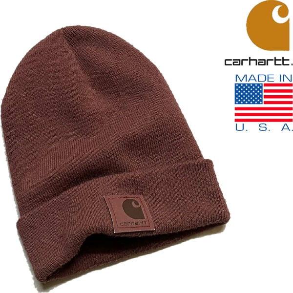 1点物◆USA製カーハート茶ニット帽子ビーニーニットキャップ古着メンズレディースOKアメカジ90sストリートCarharttワークブランド363372