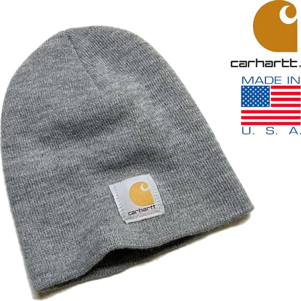 1点物◆USA製カーハート灰色ニット帽子ビーニーニットキャップ古着メンズレディースOKアメカジ90sストリート中古ワークブランド363371