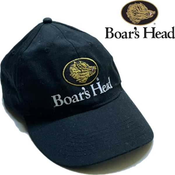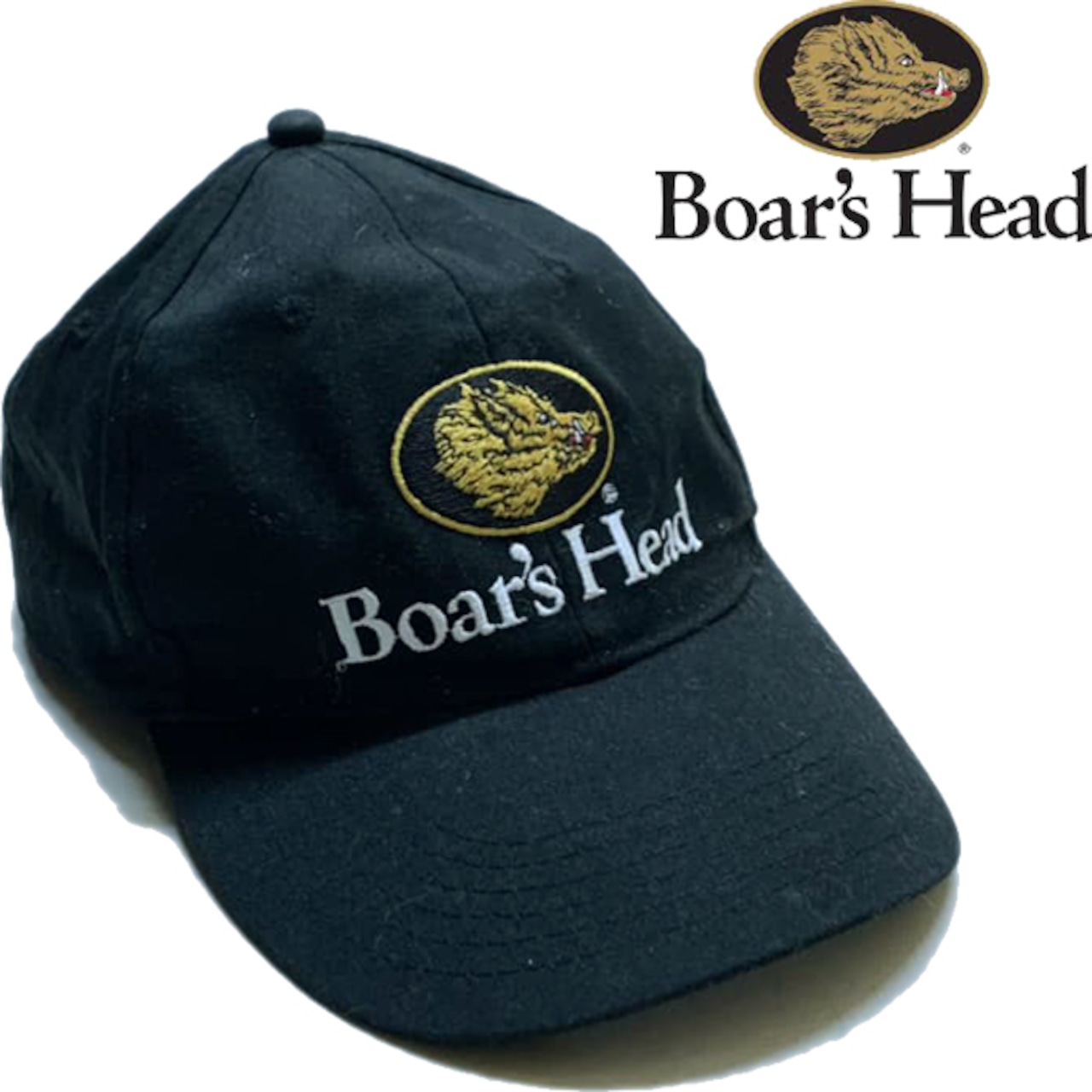 1点物◆ボアーズヘッド黒ベースボールキャップ帽子/古着メンズレディースOKアメカジ90sストリート/スポーツ中古ブランドUS猪/動物363376