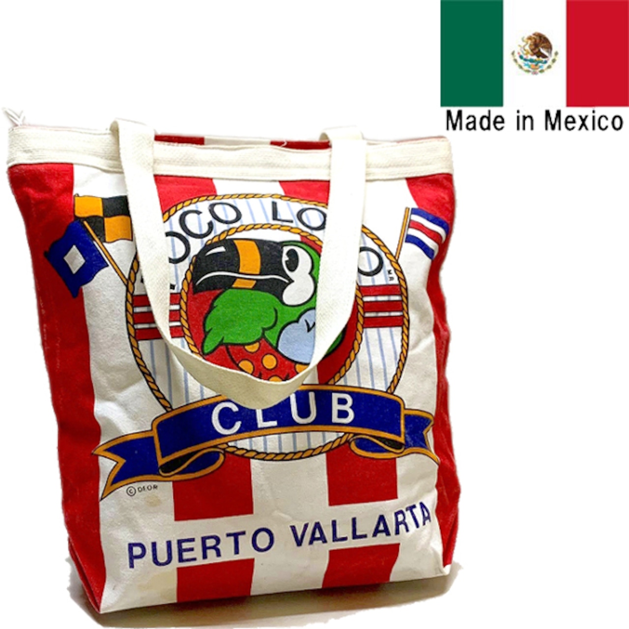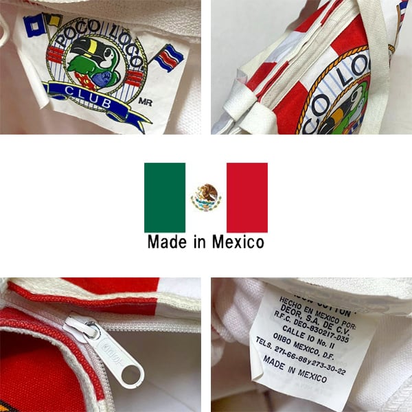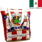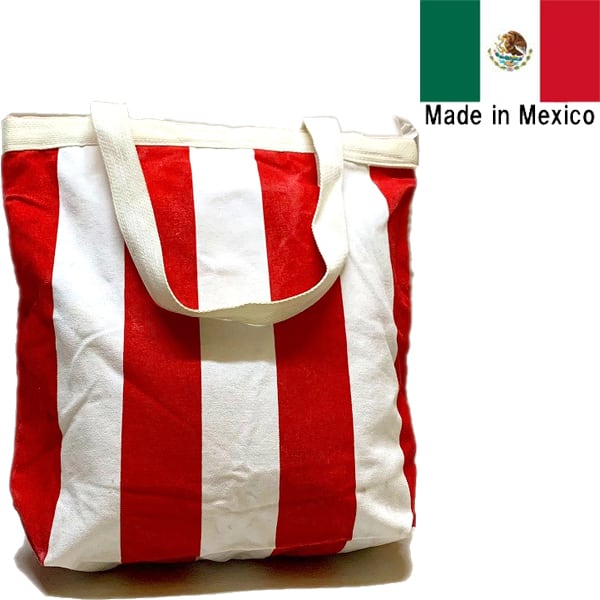 1点物◆メキシコ製ストライプ柄アニマル赤白トートバッグ鞄かばん古着メンズレディースOKアメカジ90sストリート生成り中古エコバッグ363392