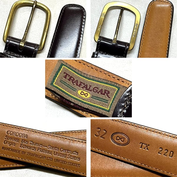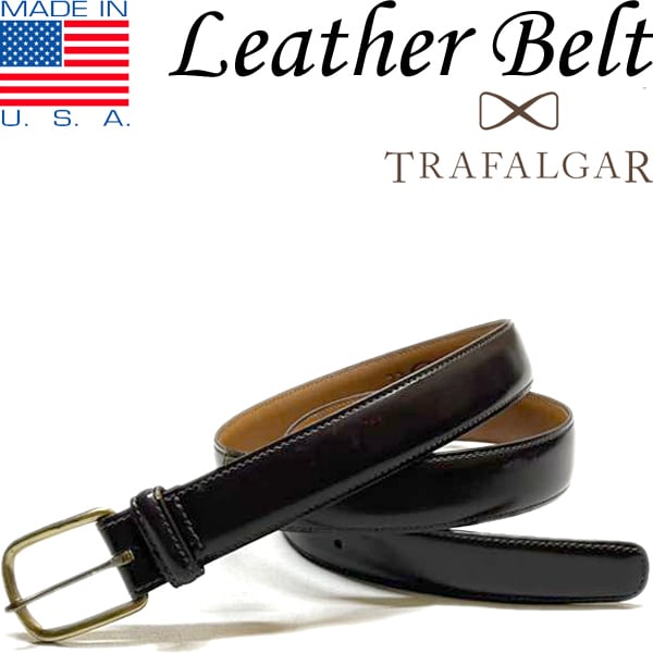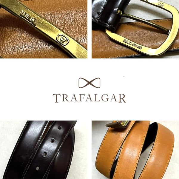 1点物◆USA製TRAFALGARトラファルガー茶レザーベルト古着メンズMLレディースOKアメカジ90sストリート革小物スポーツUSAブランド中古363486