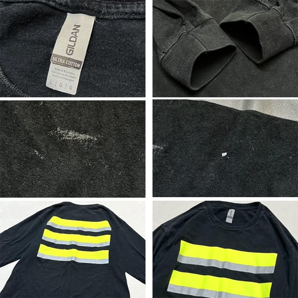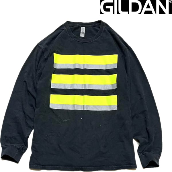 1点物◆ギルダン黒リフレクターバックプリント長袖ロンTシャツ古着LメンズXLレディースOKアメカジ90sストリート/スポーツUSAブランド363499