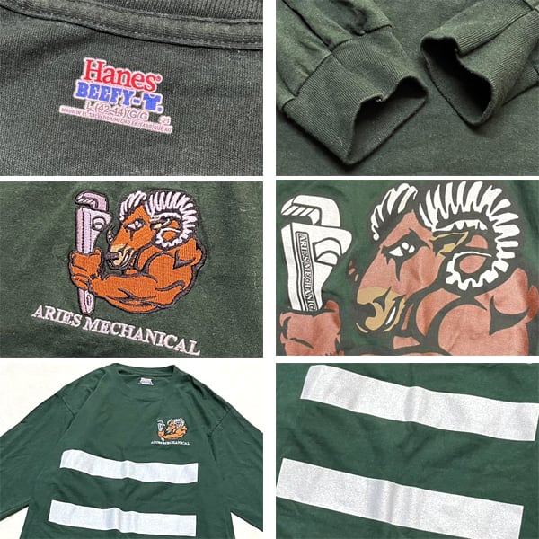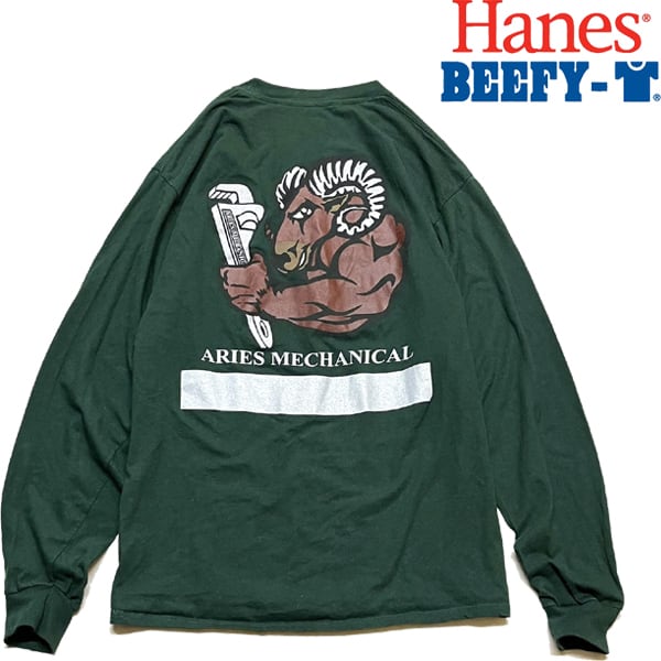1点物◆HanesヘインズBEEFY深緑バックプリント長袖ロンTシャツ古着LメンズXLレディースOKアメカジ90sストリート/スポーツUSAブランド363503