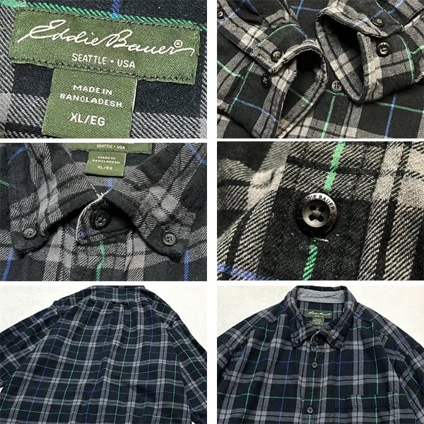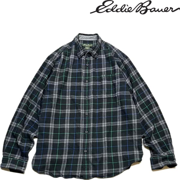 1点物◆エディーバウアー黒ネルシャツ長袖チェックシャツ古着メンズXLレディースOKアメカジ90sストリート中古ワークUSAブランド灰色363510