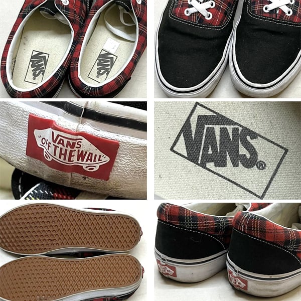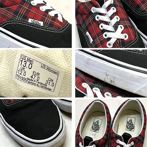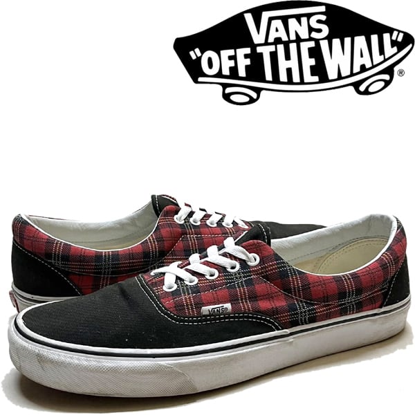 1点物◆バンズVANSエラERAチェック柄スニーカー古着13メンズ31レディースOKアメカジ90sストリートSK8スケートUSAブランド中古くつ赤363522