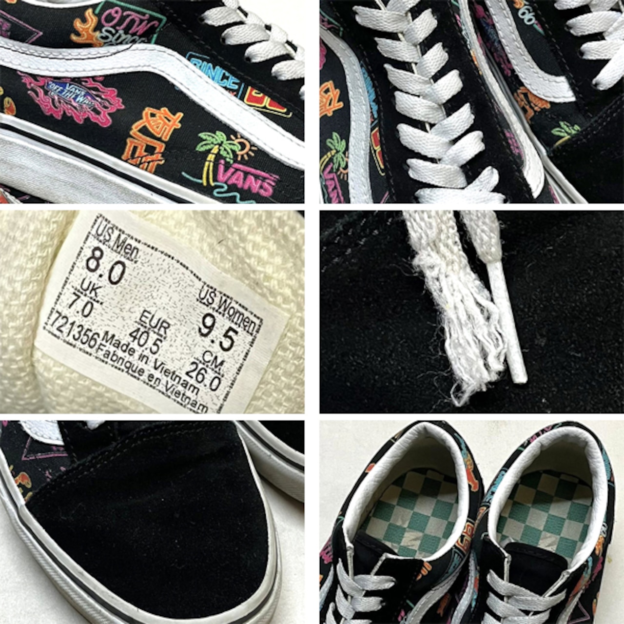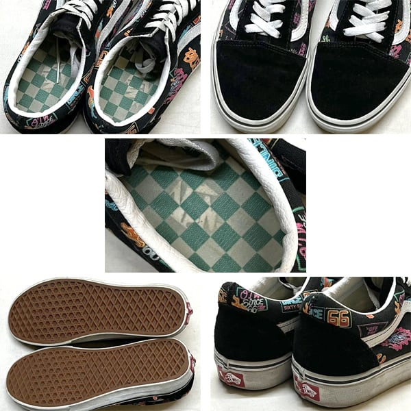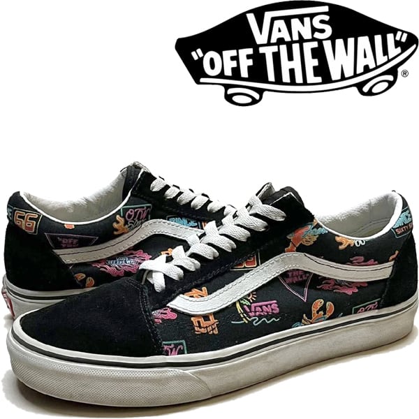 1点物◆バンズVANS黒オールドスクール夜店柄スニーカー古着メンズ26レディースOKアメカジ90sストリートSK8スケートUSAブランド中古363519