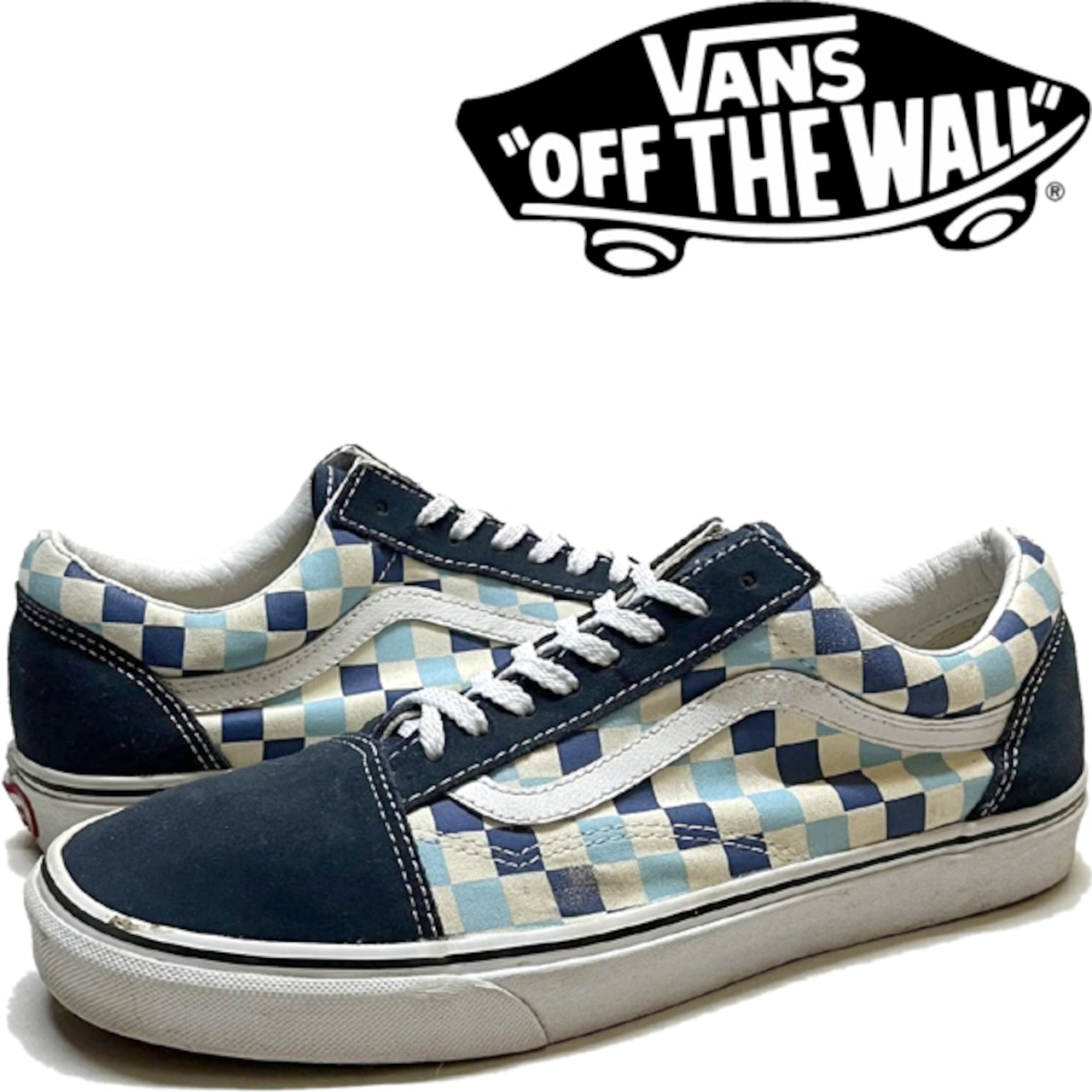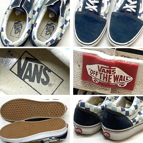 1点物◆バンズVANSオールドスクール紺チェック柄スニーカー古着メンズ28.5レディースOKアメカジ90sストリートスケートUSAブランド363517