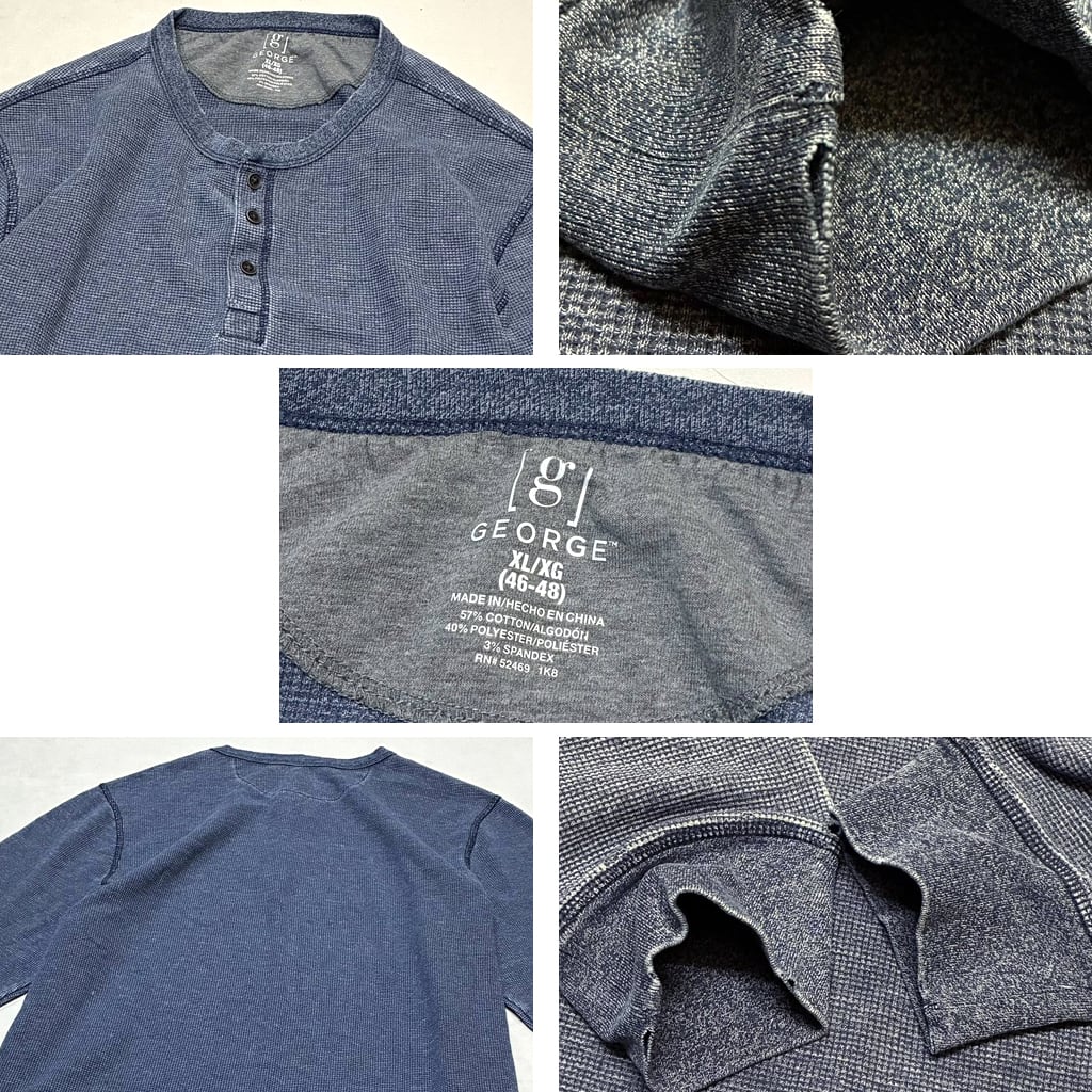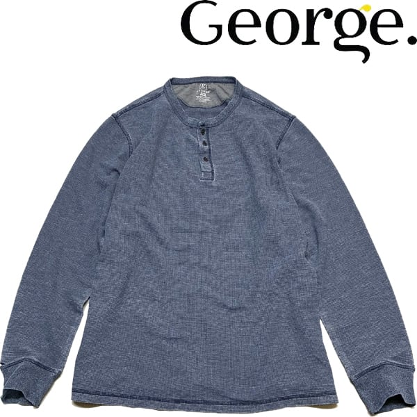 1点物◆ジョージGEORGEヘンリーネック紺無地サーマル長袖ロンTシャツ古着メンズXL/2XLレディースOKアメカジ90sストリート/スポーツ363400
