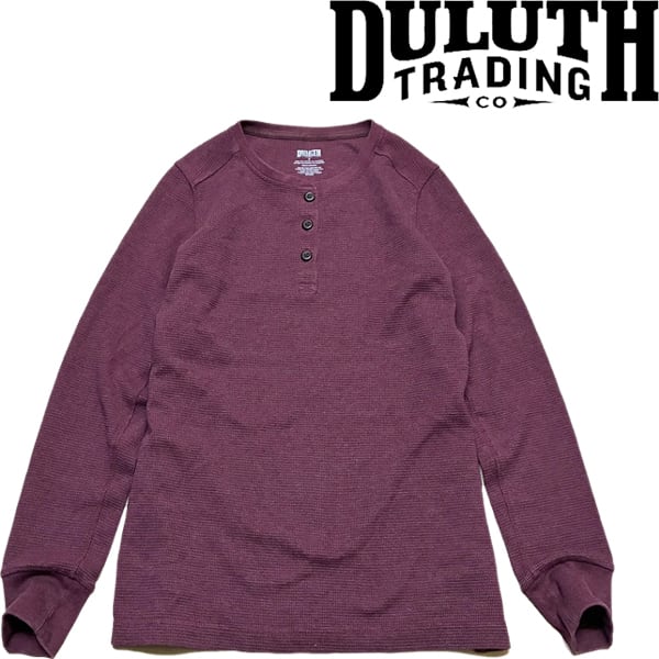 1点物◆ヘンリーネックDULUTHサーマル長袖ロンTシャツ古着メンズSMレディースOKアメカジ90sストリート/スポーツ無地エンジ/ワッフル363397