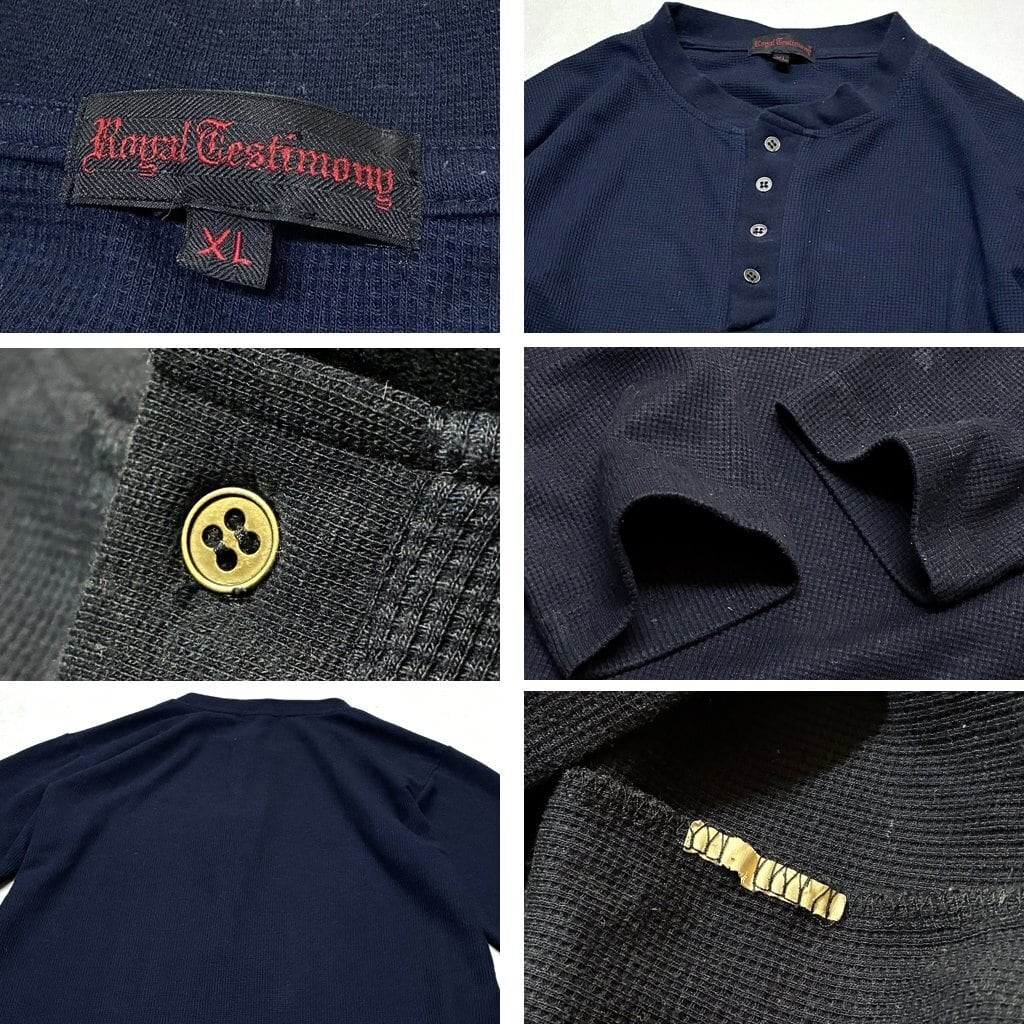 1点物◆Royal Testimonyヘンリーネック紺無地サーマル長袖ロンTシャツ古着メンズL/XLレディースOKアメカジ90sストリート/スポーツ363401