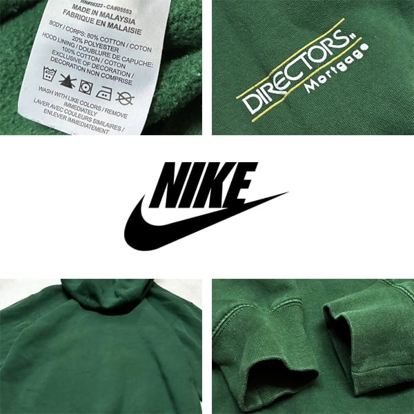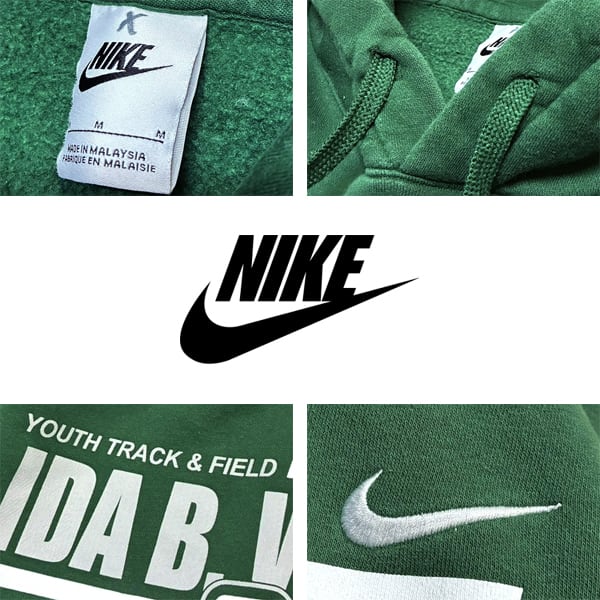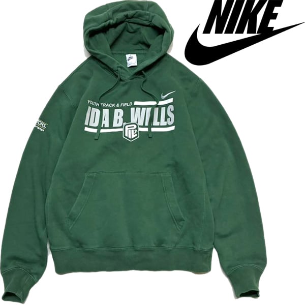 1点物◆ナイキNIKE深緑プリントスウェットパーカー古着メンズレディースOKアメカジ90sストリート/スポーツ/トレーナー/プルオーバー363528