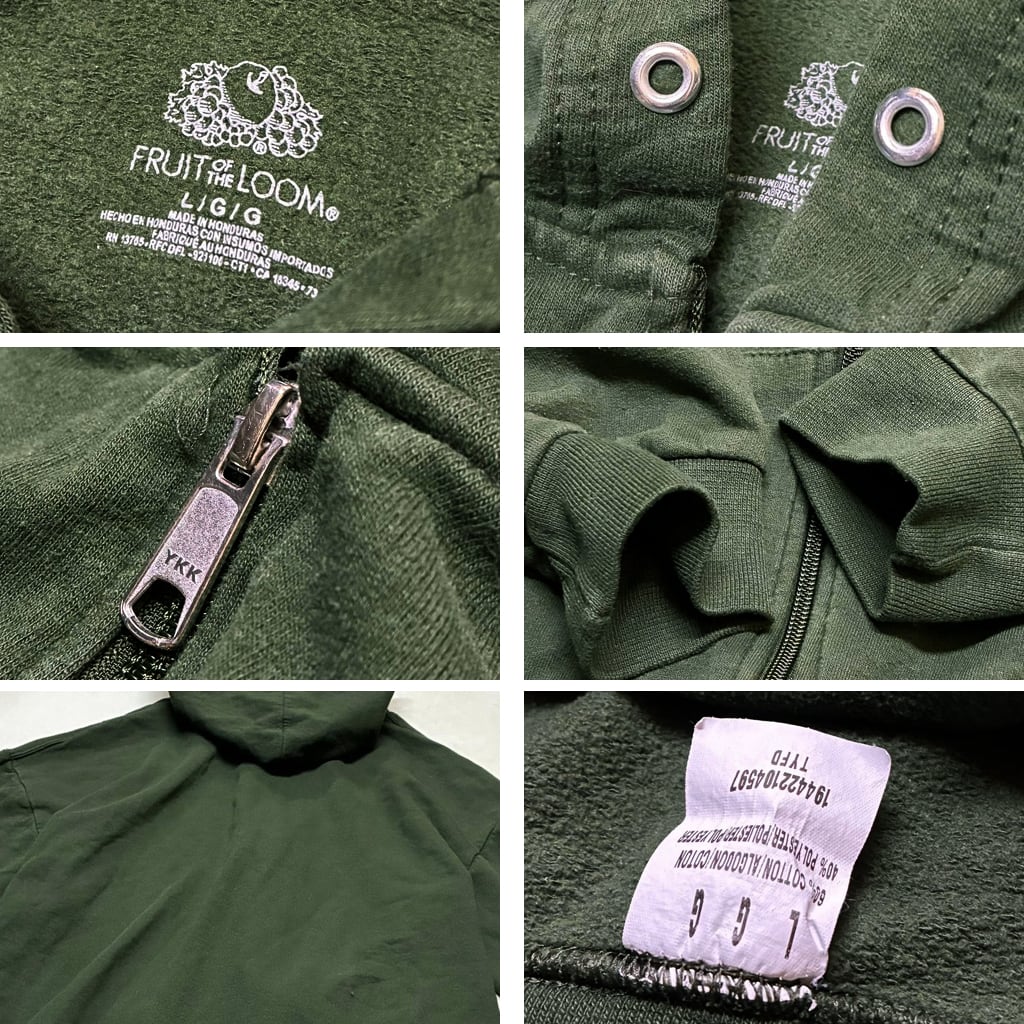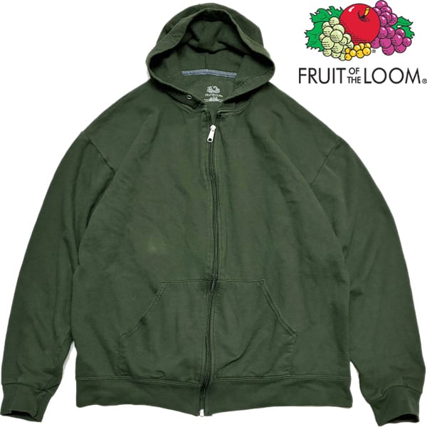 1点物◆フルーツFRUIT深緑無地スウェットパーカー古着メンズL/XLレディースOKアメカジ90sストリート/スポーツ/トレーナー/フルジップ363531