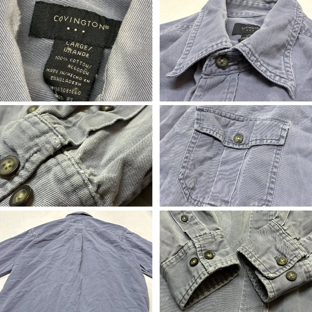 1点物◆COVINGTONビッグサイズ長袖グレーシャツ古着メンズXLレディースOKアメカジ90sストリート/ブランド中古レトロ無地ワークシャツ363410