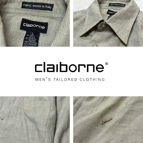1点物◆クレイボーンXLリネン混ベージュ長袖チェックシャツ古着メンズレディースOKアメカジ90sストリート/スポーツ中古ビッグサイズ363615