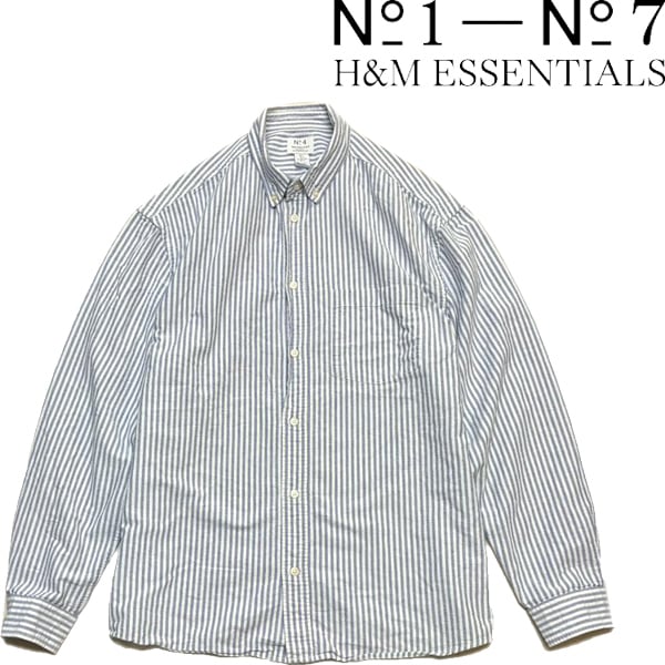 1点物◆エイチアンドエムH&M紺白ボタンダウン長袖ストライプシャツ古着メンズXLレディースOKアメカジブランド90sストリート/スポーツ363426
