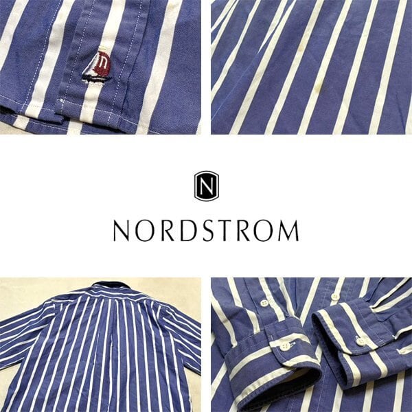 1点物◆ノードストロームNORDSTROM長袖ストライプシャツ古着メンズMLレディースOKアメカジブランド90sストリート/スポーツ紺白レトロ363428