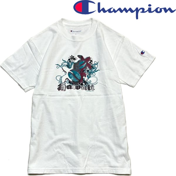 1点物◆チャンピオン海亀ハワイプリント白Tシャツ古着メンズSMレディースOKアメカジ90sストリート/スポーツChampionブランドHawaii363764