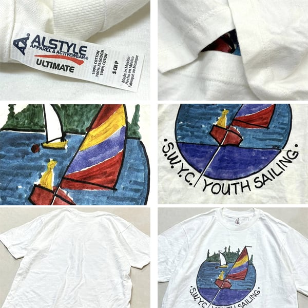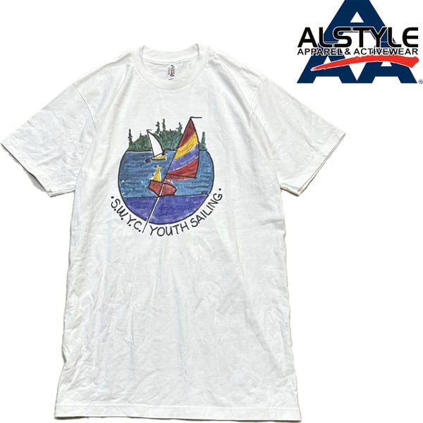 1点物◆AAAヨット自然プリント白Tシャツ古着メンズSMレディースOKアメカジ90sストリート/スポーツ中古ブランドUSAポロシャツ半袖363768