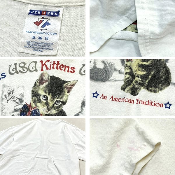 1点物◆ジャージーズ子猫CATキャット白プリントTシャツ古着メンズXLレディースOKアメカジ90sストリートスポーツ中古ブランド白Tポロ363765
