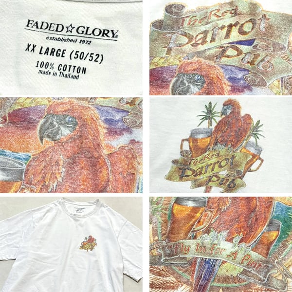 1点物◆オウムParrot Pubバックプリント白Tシャツ古着メンズXXLレディースOKアメカジ90sストリート/スポーツ中古ブランド/ポロシャツ363771