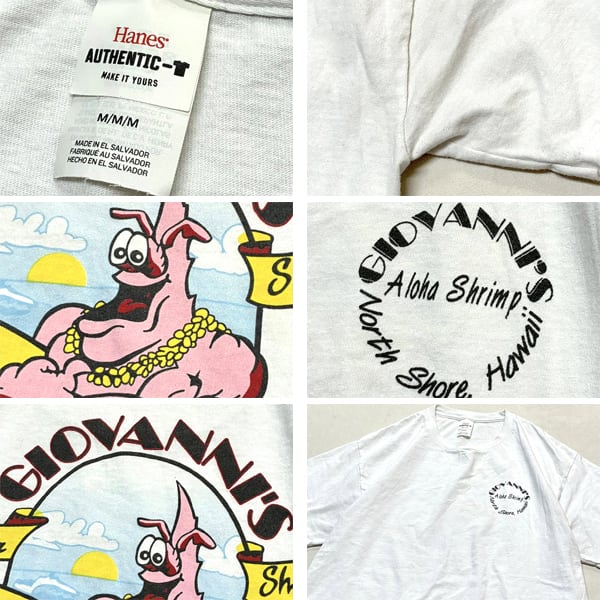 1点物◆ヘインズGiovanni'sシュリンプ白バックプリントTシャツ古着メンズMLレディースOKアメカジ90sストリート/スポーツUSAブランド363773
