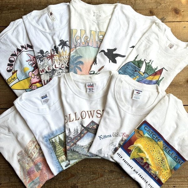 1点物◆USA素材アンビルYELLOWSTONE白プリントTシャツ古着メンズXLレディースOKアメカジ90sストリートスポーツ中古ブランド白Tポロ363766
