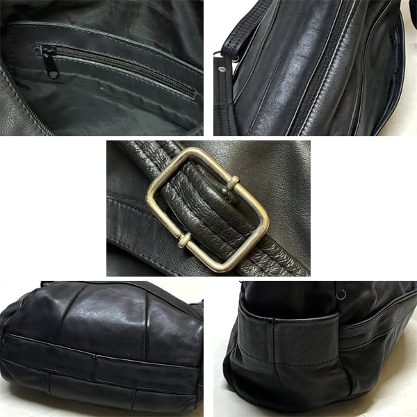 1点物◆斜め掛け革鞄レザーバッグ紺ショルダーバッグ古着メンズレディースOKアメカジ90sストリート/スポーツMixブランド巾着カバン363775