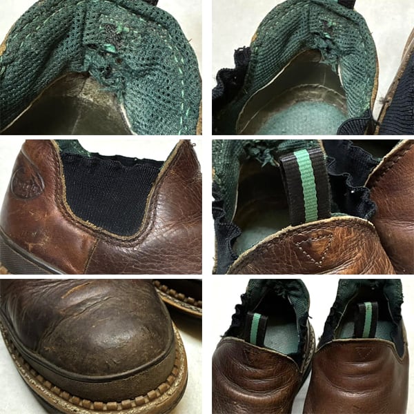中古 使用感あり (全体的なスレ傷やヨゴレ、 カカト裏にスレ穴、 インソールに黒ずみ、 側面ラバーの多少のハガレ)。 (写真参照)