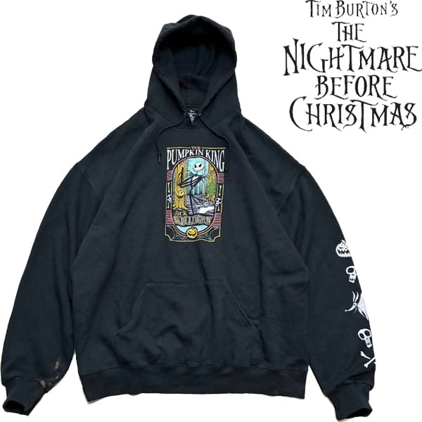 1点物◆ナイトメアビフォアクリスマス黒フェードスウェットパーカー古着メンズXL/XXLレディースOKアメカジ90sストリート/トレーナー363442