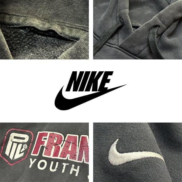 1点物◆ナイキNIKEグレースウェットパーカー古着メンズXLレディースOKアメカジ90sストリート/スポーツ/トレーナー灰色プリント刺繍363434