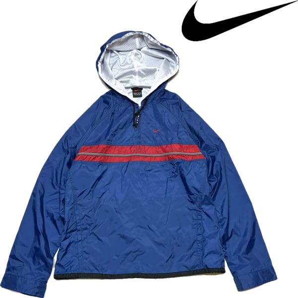 1点物◆ナイキNIKEプルオーバー紺ライン入りナイロンジャケット古着メンズレディースOKアメカジ90sストリート/スポーツブランド中古363795