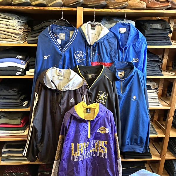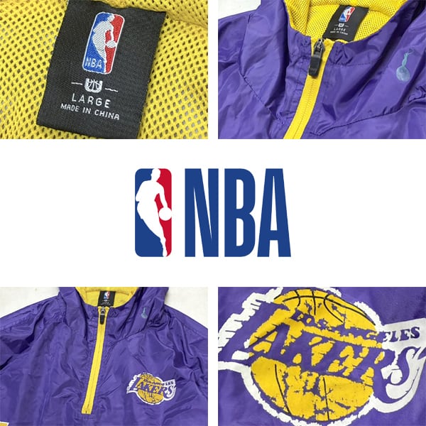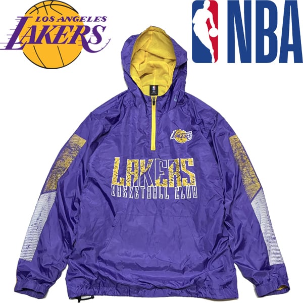 1点物◆レイカーズNBAプルオーバー紫ナイロンジャケット古着メンズXLレディースOKアメカジ90sストリート/スポーツ/ビッグサイズ薄手363799